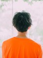 襟足と耳まわりはさっぱりとさせたマッシュボブベース。ワックスをつけた時に動きが多少出るようにトップの長さを調節☆前髪はセンターパートに分ける事で丸顔さんも縦長に見える効果が出ますよ!!