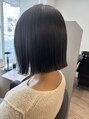 ヘイリーボブ 切りっぱなし ブルーブラック 外ハネ 縮毛矯正