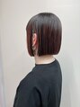 シンプルなボブスタイル。カラーはダークな赤紫で艶を出しました。どのジャンルのスタイルにも年代にもぴったりな万能なスタイルです!まとまりも良くお手入れも簡単です♪