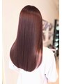 ブリーチ履歴アリの細毛のダメ―ジ毛の髪質改善。酸熱ダブルEPでケアするとダメージで痩せてしまった髪の太さを戻し、ペタンコになりがちな根元もふんわりボリュームが戻ります。カラーは艶やかなルビーレッドに。