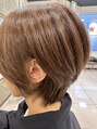 耳掛けしやすい襟足長めのショート!全体的レイヤーが入ってスッキリとした印象!カラーはスモーキーベージュ白髪も染まるカラーになっております。