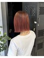 レッドカラー暖色カラー赤髪ダブルカラー切りっぱなしボブ外はね