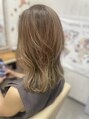 しばれる長さで顔周りにレイヤーをいれてます。毛先はブリーチ履歴がありグラデーションぽくなってます。