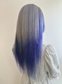全体のベースをブリーチして整えさせていただき、ハイトーンアンブレラカラーにしました。上はシルバー系でできるだけ白っぽく見えるように、下はカラートリートメントで綺麗なラベンダーブルーにして上との差もしっかり感じるようにしました。/福島市