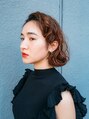 長さはアゴラインより少し長めのロブスタイルで、パーマを活かしたヘアスタイルです。前髪もかきあげれるよう長めに設定しており、耳に掛ける事で、お顔周りはスッキリとし、うしろのパーマを引き立てています。【ボブ/パーマ/ショートカット/ヘッドスパ】