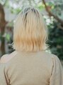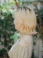 パツッとした切りっぱなしのミディアムボブに、お顔周りのレイヤーを入れたとってもイマドキなスタイル!リタッチを残したことにより、ブロンドの鮮やかさが際立っています。ゆるく巻くことでこなれ感が出ますね♪【ブリーチ/ダブルカラー/ボブ/ハイライト】