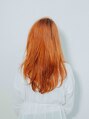 今が旬のアプリコットオレンジで柔らかいキュートな女性像を作り。カットはレイヤーの切り口を重ためにカットすることで、Aラインを主張することができます。コテでワンカールを作り、オイルを揉み込むと◎普段のロングスタイルに飽きた方は是非。