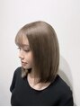 『イルミナカラー』を使用した透明感のあるハイトーンカラーと切りっぱなしボブ、シースルーバングの組み合わせで、お洒落可愛いを演出しています。