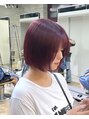 暖色カラーボブ赤髪レッドカラーダブルカラーカシスカラー艶髪