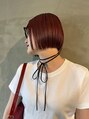 ライン感をしっかりとだした、ボブスタイルです。 毛先は重さを残し、耳裏は量をしっかりと取ってあるので、耳をかけた時もタイトになり可愛いです。カラーはブリーチをし、深みのある赤をつくりました。ファッションが更に楽しくなるスタイルです!