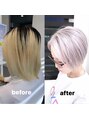 ベージュの中で極限まで白っぽく近づけたカラーです(^^)ブリーチの明るさ、髪の毛の状態、いろいろが合わさってできるカラーです☆白ではなくあくまでベージュです(^-^)
