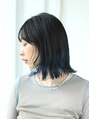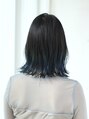 地毛ベースに、青のルーツカラーを施したスタイルです。毛先のみブリーチをしているので、伸びてきた時の根元が気になりにくいスタイルです。ネイビー系のブルーであれば、1ブリーチでも可能です。地毛ベースなので、チャレンジしやすいカラーです。