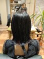 耳上~バックのインナーブリーチ!今回は紫ピンクをいれて、あえて表面の髪を地毛くらいまで暗くしました!コントラストを出すことでインナーがより映えますカットは肩について自然と跳ねる切りっぱなしでお手入れも楽です!夏仕様に軽めにしてあります!