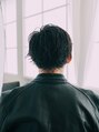 ブラックヘアで男らしくワイルドに。トップは長めに、ジェルで束感をだし7:3わけにして男らしいスタイルにしました。黒髪の7:3だけでは重くなりすぎてしまうので、バックスタイルは動きをだして、外ハネにして軽くみせるようにしてあります。