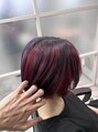アンブレラカラー!全体をブリーチ後インナー部分にブラックチェリーレッド、トップ部分をネイビー系に仕上げました!