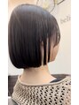 ヘアモデルのご協力ありがとうございます ダークカラーパープル系で染めた切りっぱなしボブ ストレートアイロンで内巻きにしてオイルで仕上げました。