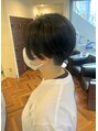 髪質、生え方、骨格に合わせツーブロックのセクションを取りアンダーセクションをシザーで刈り上げます。フロントからマッシュベースのラインになる様重くならない程度グラデーションをいれました。