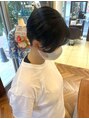 髪質、生え方、骨格に合わせツーブロックラインにセクションを取ります。アンダーセクションをシザーで刈り上げました。フロントから重くなり過ぎない程度グラデーションを入れました。
