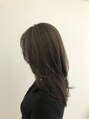 くすみ感のあるオリーブグレージュです。暗くても透明感のあるカラーです。レイヤーカットで軽い動きのあるスタイルです。