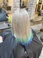 ホワイトシルバーのベースカラーに毛先だけで遊ぶエンドカラーを2色入れで。飽きたらカットでなくしていけちゃうので、飽き性な方やカラーを色々変えたい方にオススメです。(2色以上は追加料金)