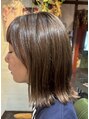 トーンダウンしていた部分をライトニング施術で一度おとして、モノトーン系ブラウンでオンカラーしました