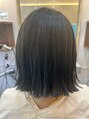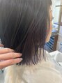 オン眉のAラインのボブ、顔周りのブリーチ部に大人っぽいパープルを入れ全体にアッシュでカラーしてます