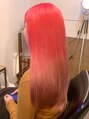髪全てをブリーチで脱色後、お好みの色を入れます。色の入れ方でグラデーションを作ることができます。こちらのモデルさんはブリーチ1回のみで、カラーのみの施術時間は2時間です。