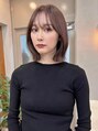 タッセルボブ。切りっぱなしのラインにカットしたボブに顔まわりにレイヤーを入れて動きをだしています。カラーはラベンダーベージュで柔らかい透明感ある暖色系カラー。