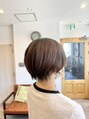 収まりよく切ったマッシュショート耳にかたり、アレンジもしやすい程よく丸みを残した女性らしいショートです