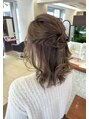 お出掛けようカジュアルヘアセットです。ハーフアップをベースにに毛先を散らしました。あまりゴージャスになり過ぎない程度がポイントです。