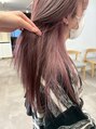 オリーブアッシュ赤み消しカラー*コテ巻きシアーカラー