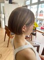少しレイヤーの入ったショートボブ。耳にかけやすい長さになっています◎ベースの明るさをナノハイライトでしっかりトーンアップ。オンカラーにはイルミナカラーで、透明感を意識したグレージュカラーを重ねました♪
