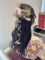 ハーフアップでロープ編みにし、紐のヘア飾りでセットしました。