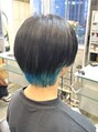 マッシュベースのショートスタイル。襟足を残したショートにインナーカラーを組み合わせた最近人気のスタイル。鮮やかな水色も資生堂アルティストカラーで染められます。ブリーチベースは場合によっては2回以上必要です。ぜひご相談下さい!