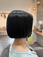 切りっぱなしのボブです。最後にアイロンで伸ばすと、より揃ったラインのボブに仕上がります。