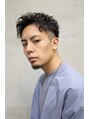 外国人風パーマ・スペインカールをプラスしたベリーショート!サイドバックをハードに刈り上げたツーブロックにトップはレイヤーを入れて柔らかく動く質感に!強めツイストスパイラルパーマをしっかりとかけて品よく男を上げる!