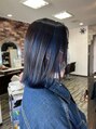 ブルー×ブラックおしゃれメッシュ切りっぱなしミディ/ホットペッパービューティー