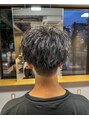 ツーブロマッシュにソフトツイストをプラスしてアイロンで軽く波打たせたような質感に。パーマでお洒落したいけどダメージや毛先のクルンとした質感が気になる方にオススメです。全体的に軽く仕上げれるので暑いシーズンにも挑戦しやすいパーマです。