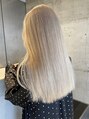 ブリーチ2回でつくるブロンドカラーです!ブロンドカラーの透明感をいかしたかったのでドライな仕上げにしてます!