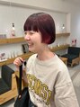 顔周りマッシュラインのまるみミニボブ。全体はボルドーカラーで耳周りにピンクのインナーカラーを耳にかけると消せるので社会人でも挑戦する方増えています**