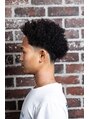 サイドからバックにかけてツーブロックでテーパーフェードを入れたアフロスタイル長さも短めで設定して大きくなりすぎないトレンドのアフロスタイル