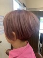 白髪ぼかしハイライトをたっぷり入れピンク系カラーをonクセをいかしながらまとまりやすいコンパクトなショートボブに