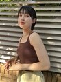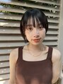 地毛風透明感カラーとショートボブヘアラウンドした前髪がお洒落なポイント