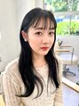 パープルのダークトーンカラー。透明感が出て上品な質感になります。カット毛先は厚みを残したまま。ローレイヤーを入れて重くなりすぎないようにしています。普段巻かない方などにもおすすめです。