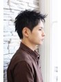 ソフトツーブロックを含んだアップバングショート。毛先が柔らかく動くように設定。どこから見てもカッコいい フォルムコントロールをしてあるので、外国人風な奥行き骨格をGET!ポイントパーマで躍動感と骨格補正をして、再現性しやすいスタイルに。
