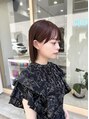 毛先はぱつっと感、丸みが出にくいように毛量調整をしてピンクブラウンカラーで暖色ボブに☆
