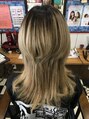 ブリーチでメッシュのようなバレイヤージュカラーにしてみました。クセがあるので縮毛ストレートしてます。
