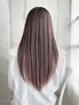 ツヤ感のあるピンク系カラーにさらっと落ちる様なナチュラルストレートスタイルです。顔まわりのレイヤーが軽さも出す人気のスタイル★