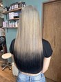 ケアブリーチを毛先以外に使い、その後にホワイトベージュカラーを入れて毛先にはブラックを入れ裾カラーの完成です♪