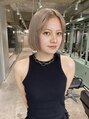 ブリーチ二回~。黄味もなく寒色でもない柔らかいベージュ。外人さんのような色味に仕上げました!カットは顎上で切っています。